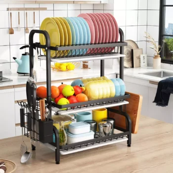 3 Tier Dish Drying Rack with Utensil and Cutting Board Holder