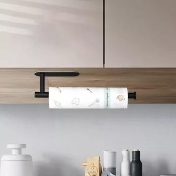 Multi-Purpose Stainless Steel Towel and Paper Rack – Silver/Black, Strong Adhesive