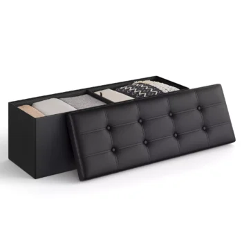 43 Inch Folding Storage Ottoman Bench with Padded Seat and Hidden Storage