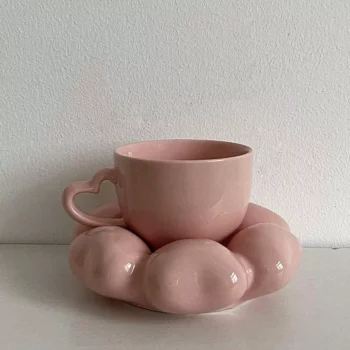 Pink Heart Ceramic Coffee Mug with Saucer