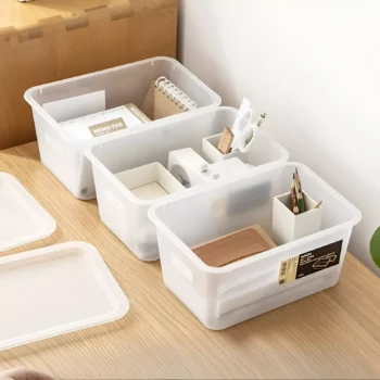 Stackable Transparent Desktop Storage Box with Tape-Covered Lid