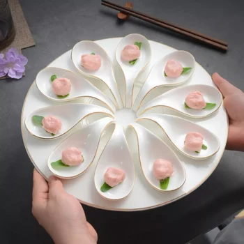 Golden Edge Ceramic Snack Plate with 10 Grids