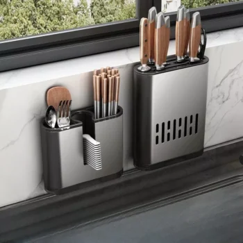 Luxury Gun Grey Wall-Mounted Kitchen Rack with Chopstick and Knife Holder