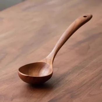 Teak Wood Soup & Serving Ladle with Hook – Non-Stick & Handcrafted
