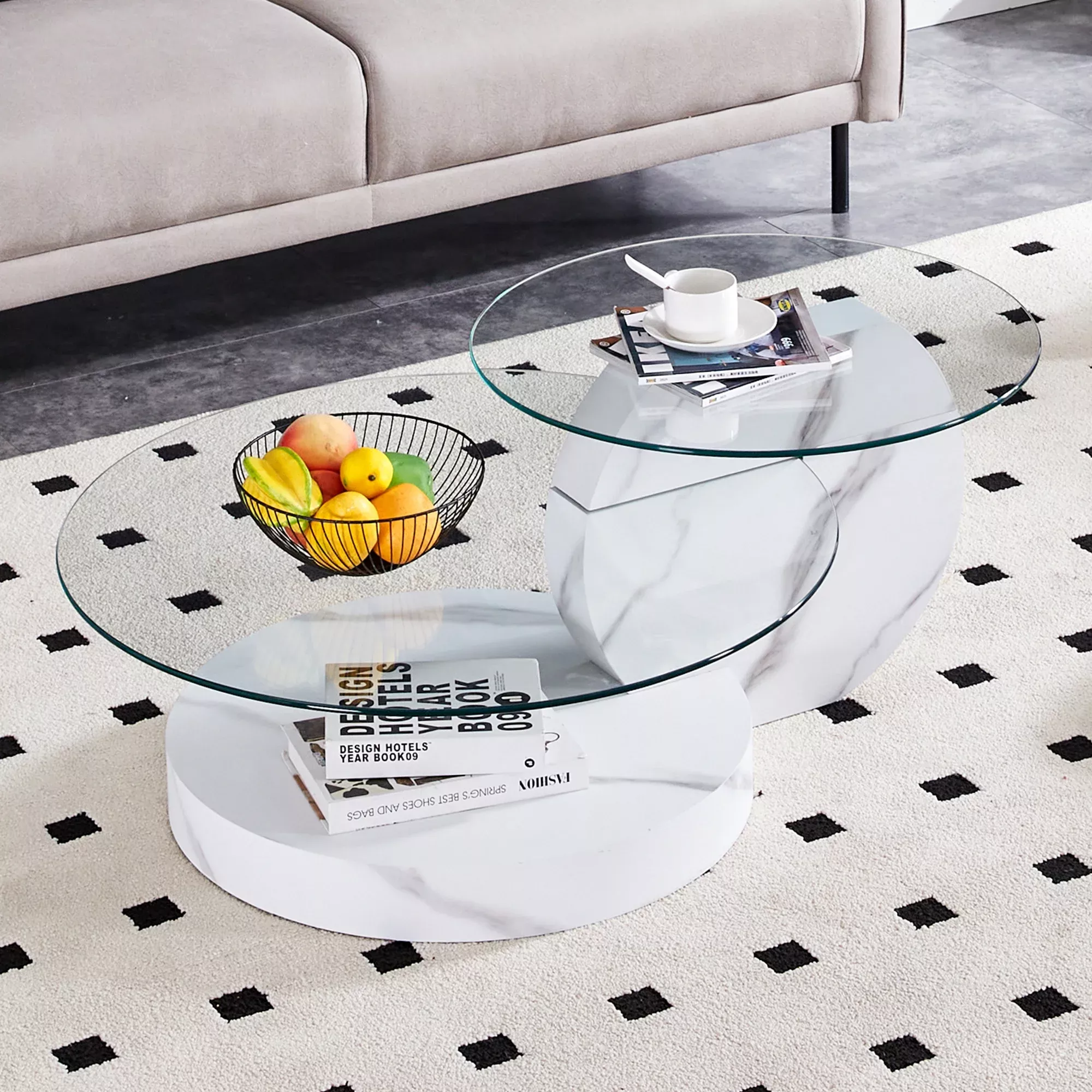 Modern Round Glass Coffee Table with 3 Tiers and Storage for Small Spaces