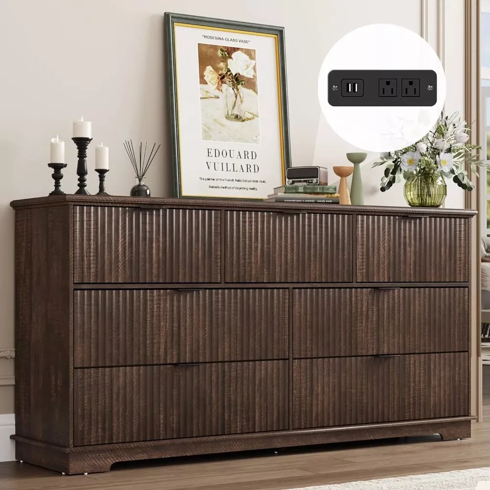 63″ Fluted 7 Drawer Dresser with Power Outlet