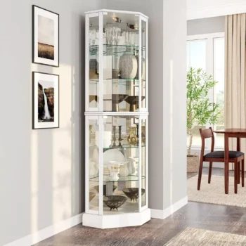 Lighted Glass Display Curio Cabinet with Tempered Glass Doors and Shelves