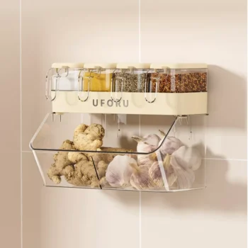 Wall Mounted Condiment Storage Box Set with Spice Jars and Organizer Shelf