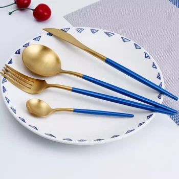 Matte Blue Stainless Steel Cutlery Set – Dishwasher Safe Flatware Set
