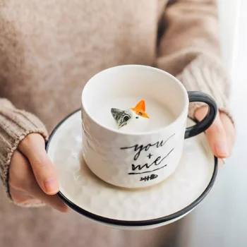 Modern Cute Cat Ceramic Mug with Saucer – Porcelain Coffee & Milk Cup