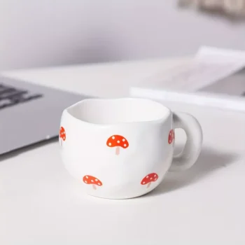 Cute 7.4oz Mushroom Ceramic Mug – Hand-Kneaded Coffee & Milk Cup