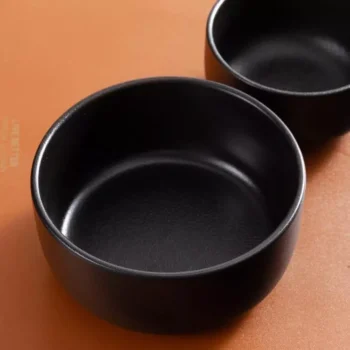 Japanese Style Black Frosted Ceramic Bowl with Golden Edge