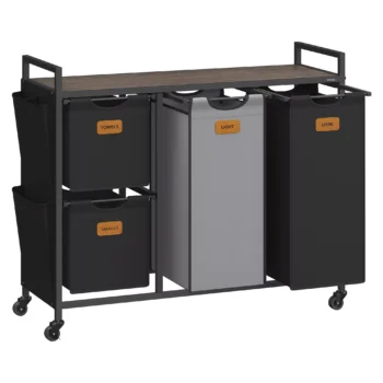 Rolling Laundry Hamper with 4 Compartments and Shelf, 150L Capacity