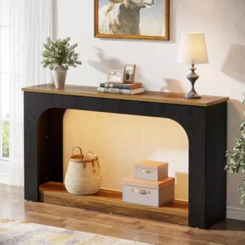 55-Inch LED Console Table, Farmhouse Narrow Sofa Table with Storage