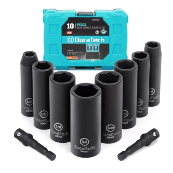 10-Piece 3/8″ Drive 6 Point Deep Impact Socket Set SAE Sizes