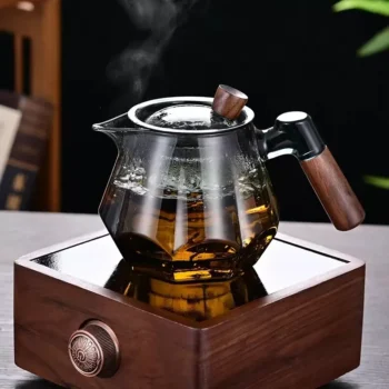 High Borosilicate Glass Walnut Boiling Teapot – Elegant Hexagonal Design