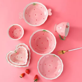Charming Heart-Shaped Strawberry Ceramic Bowl