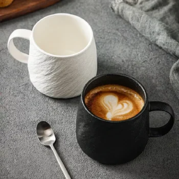 Frosted Stone Large Ceramic Coffee & Tea Mug – Minimalist Handgrip Cup