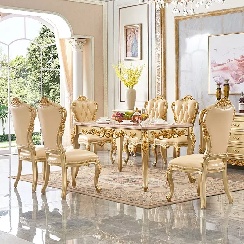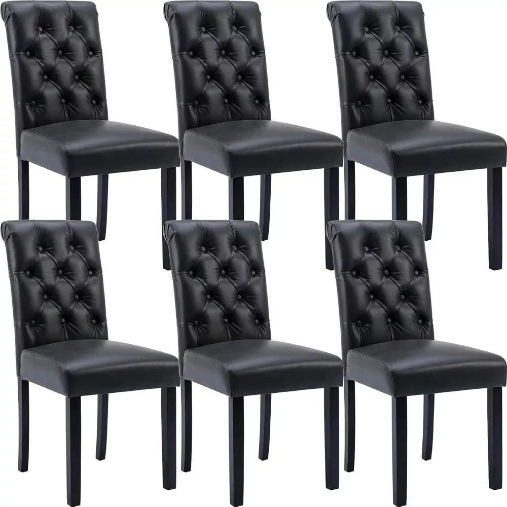 Set of 6 Tufted Leather Dining Chairs with High Back for Dining Room & Living Room