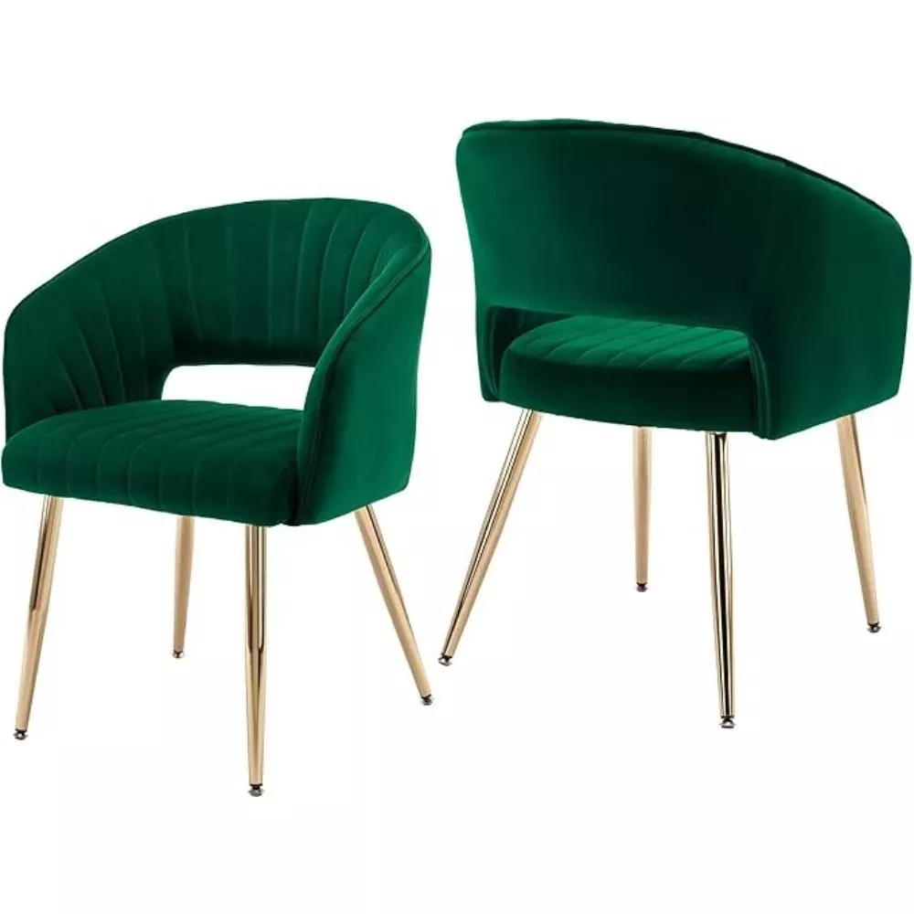 Modern Velvet Dining Chair Set of 2 with Gold Legs, Tufted Upholstered Living Room Chairs
