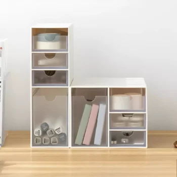 Stackable Transparent Desktop Storage Box with Tape-Covered Lid