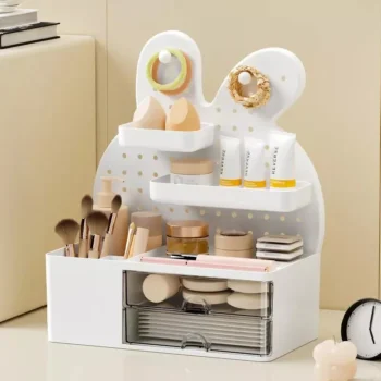 Double Layer Desktop Storage Rack – White Organizer for Office, Desk & Cosmetics
