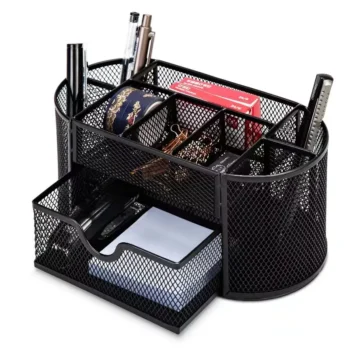 Metal Mesh Desk Organizer with 4 Compartments and Drawer