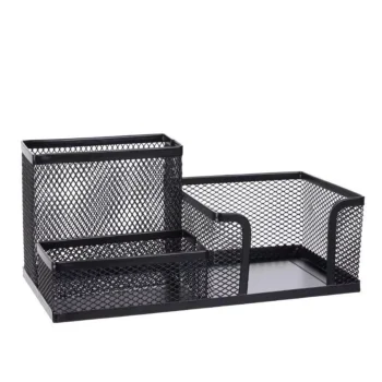 Metal Mesh Square Pen Holder with 3-Grid Desktop Organizer