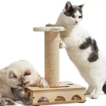Interactive Wooden Cat Puzzle Toy with Scratching Post and Bell Balls