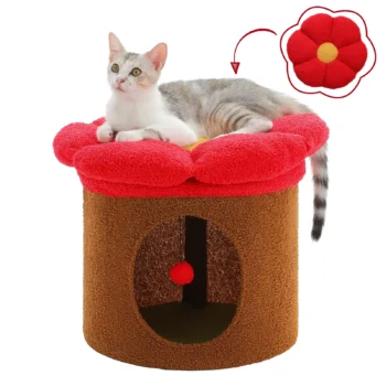 Cozy Flower Cat House with Perch, Condo & Interactive Play Ball