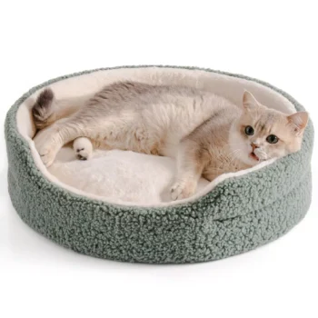 Round Plush Pet Bed for Cats and Small Dogs – Washable, Non-Slip, Cozy Design