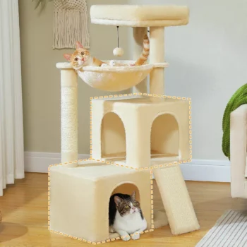 Wood Cat Tower with Hammock, Condo & Sisal Scratching Posts