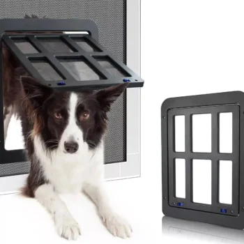 Weatherproof Metal Frame Pet Door with Lock & 3-Flap System for Dogs