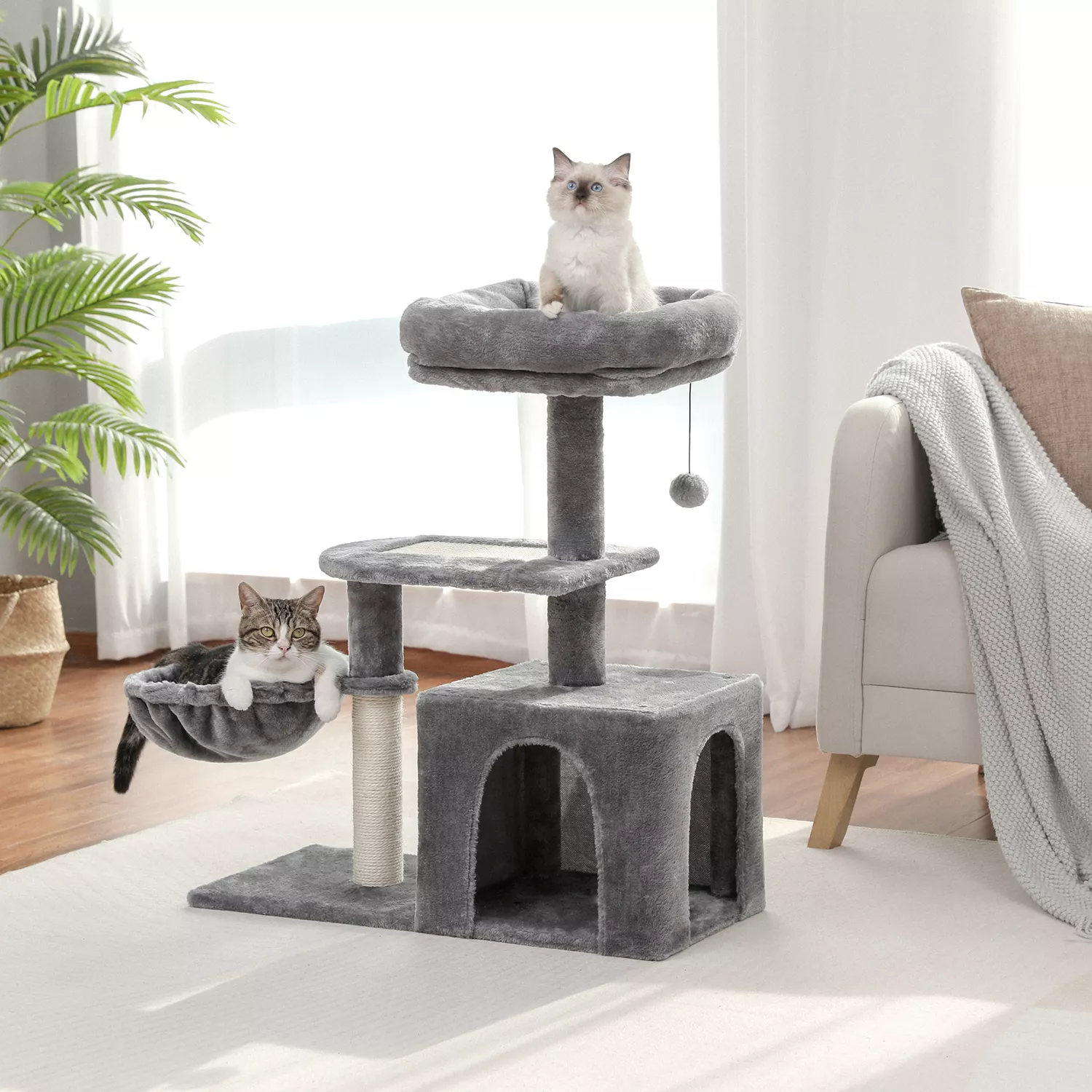 Compact Plush Cat Tree with Condo, Hammock & Scratching Post