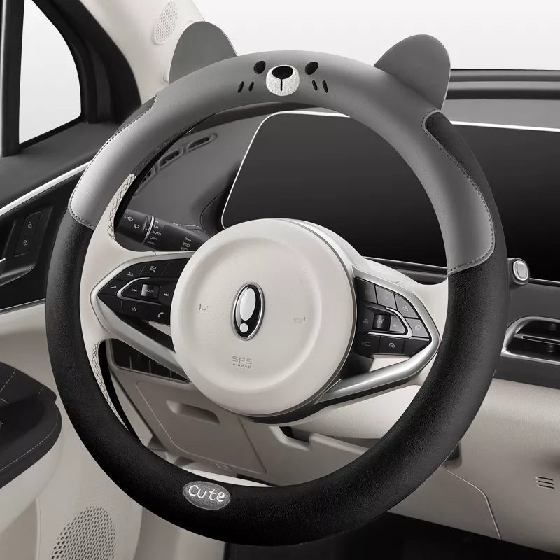 Cute Bear Suede & Leather Steering Wheel Cover – All-Season Comfort Fit