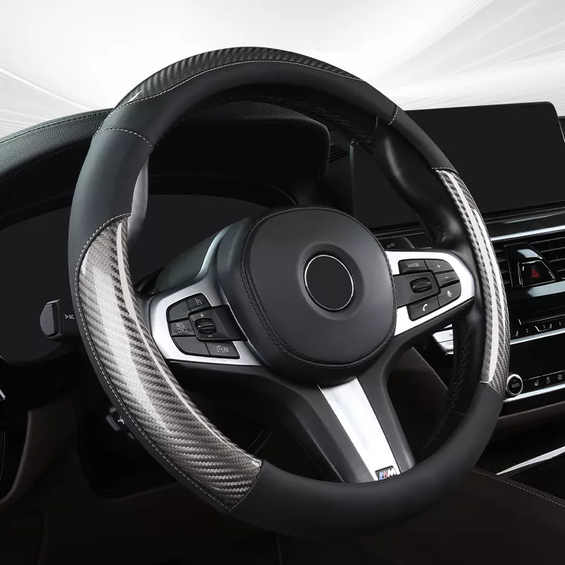 Premium Carbon Fiber & Leather Steering Wheel Cover – All-Season Comfort