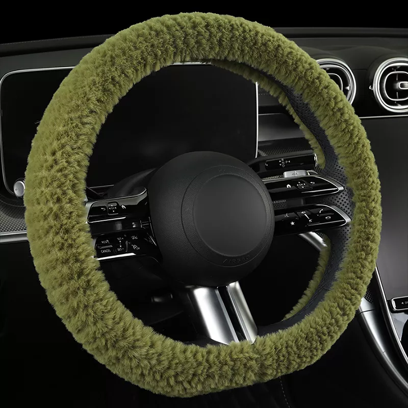 Plush Elastic Car Steering Wheel Cover – Warm, Non-Slip & Universal Fit (14.5-15″)