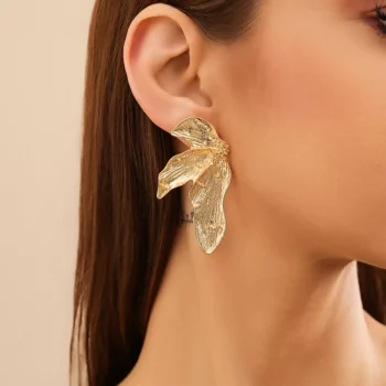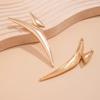 Gold Leaf Drop Earrings for Women – Irregular Geometric Statement Jewelry