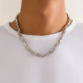 Men’s Punk Geometric Bead Choker Necklace – Silver Irregular Chain Jewelry