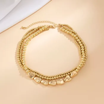 Trendy Multilayer Gold Beaded Choker Necklace for Women – Geometric Design
