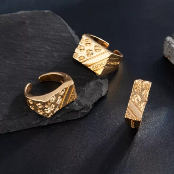 3Pcs Vintage Gold Chunky Rings Set for Men – Hip Hop Grunge Jewelry