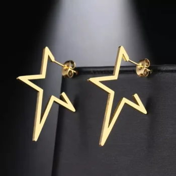 Vintage Gold Star Hollow Stud Earrings for Women – Punk Hip Hop Statement Jewelry