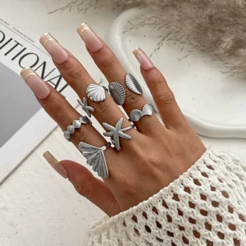 6 Pcs Adjustable Starfish & Conch Rings Set for Women – Vintage Beach Jewelry