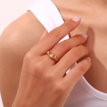 Colorful 18K Gold-Plated Hypoallergenic Stainless Steel Ring with Zircon Eye
