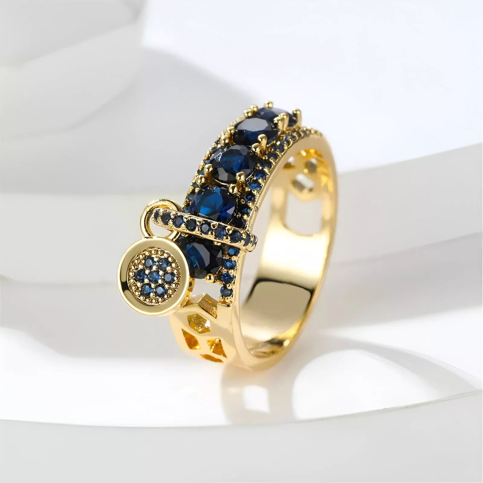 Vintage Royal Blue Sapphire CZ Gold Ring for Women