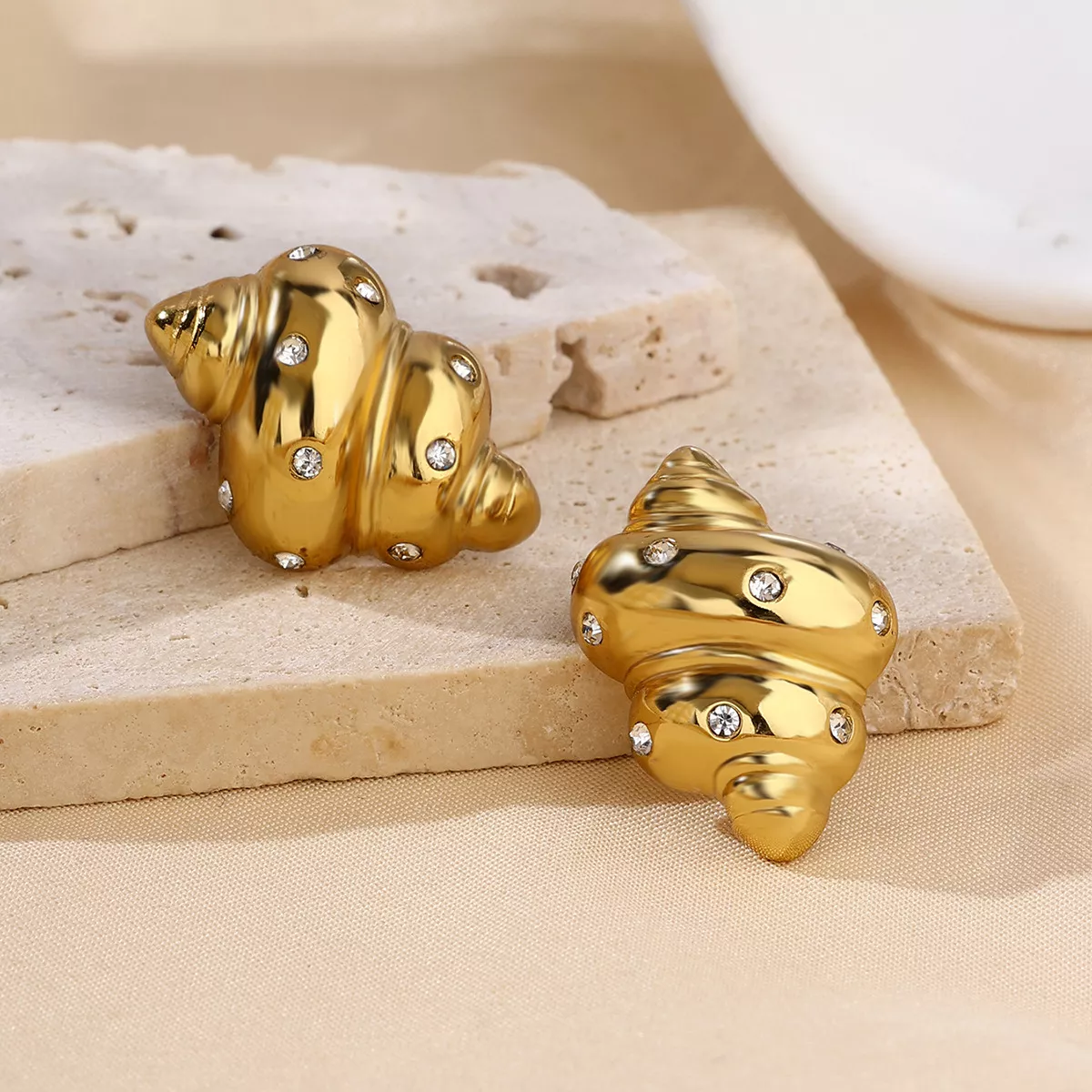18K Gold Plated Conch Rhinestone Stud Earrings for Women