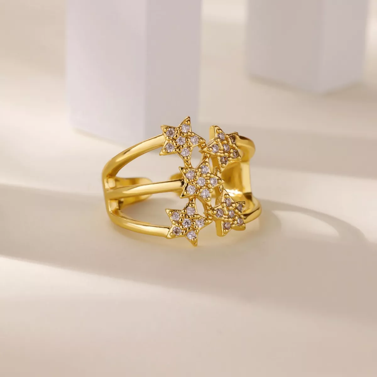 Luxury 18K Gold Plated Zircon Star Adjustable Ring for Women