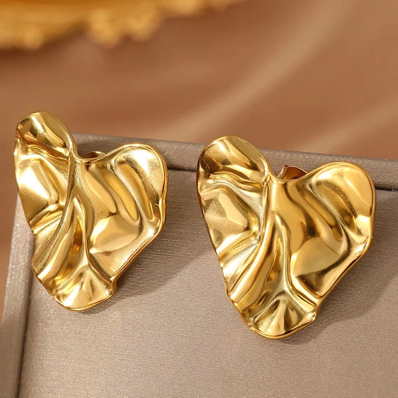 Gold Fan Shell Stainless Steel Stud Earrings for Women