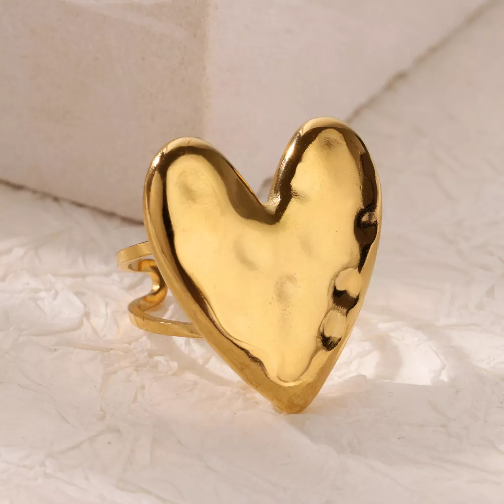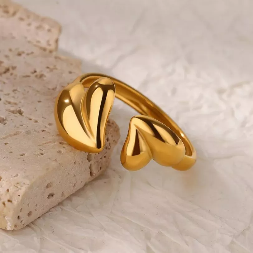 Irregular Heart Design Stainless Steel Open Ring for Women – Gold Color Wedding Aesthetic Jewelry