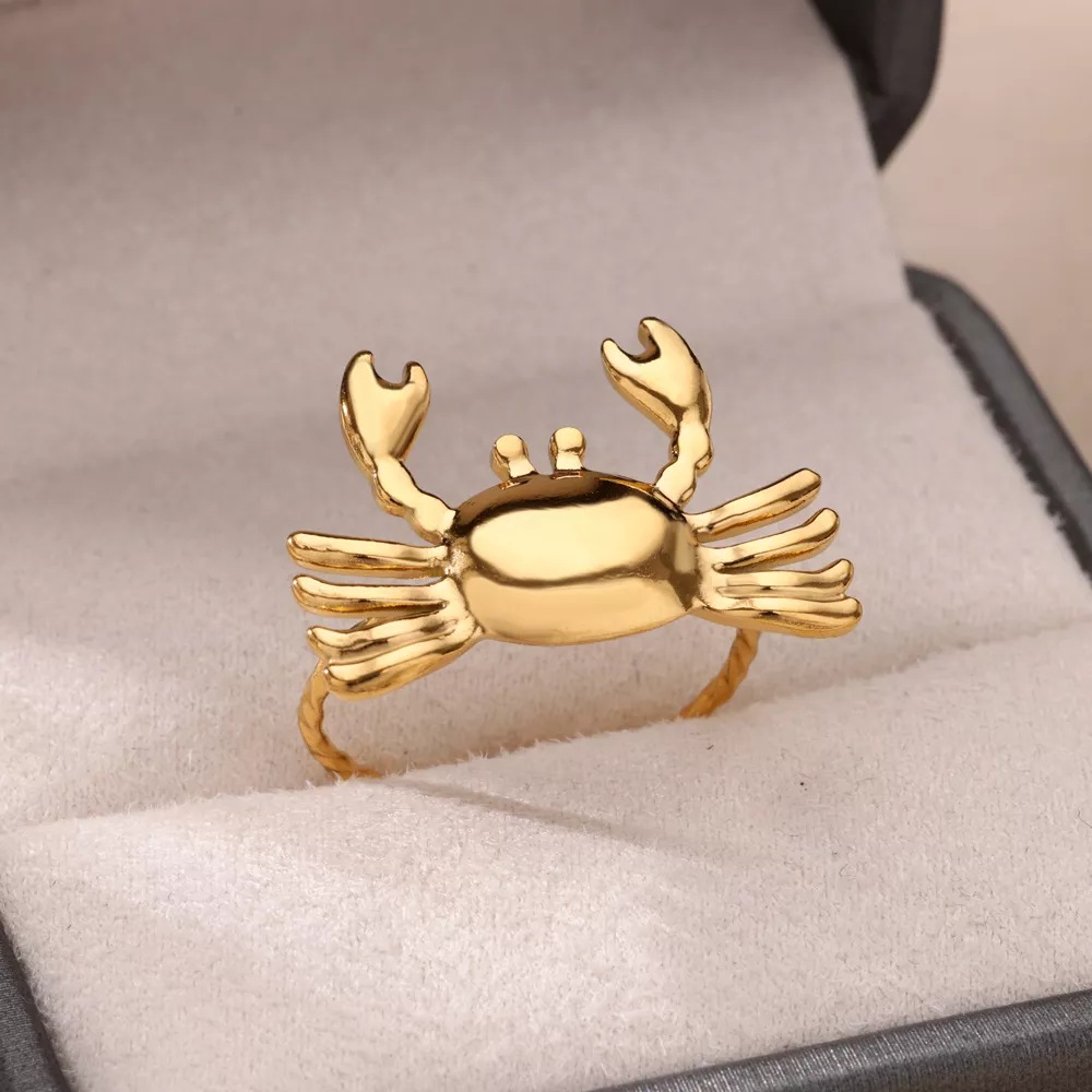 Gold Crab Ring for Women – Cute Animal Open Adjustable Waterproof Jewelry